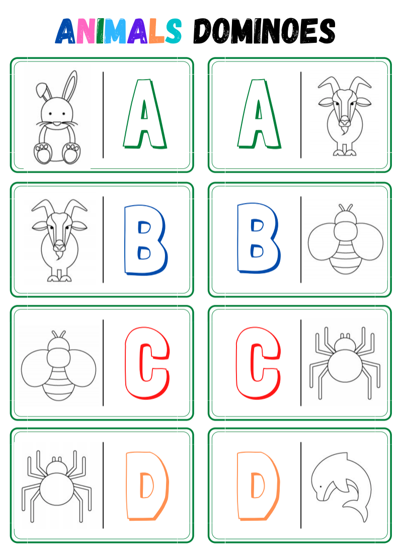 Scarica le schede didattiche per colorare e giocare con il domino degli animali che preferisci:
