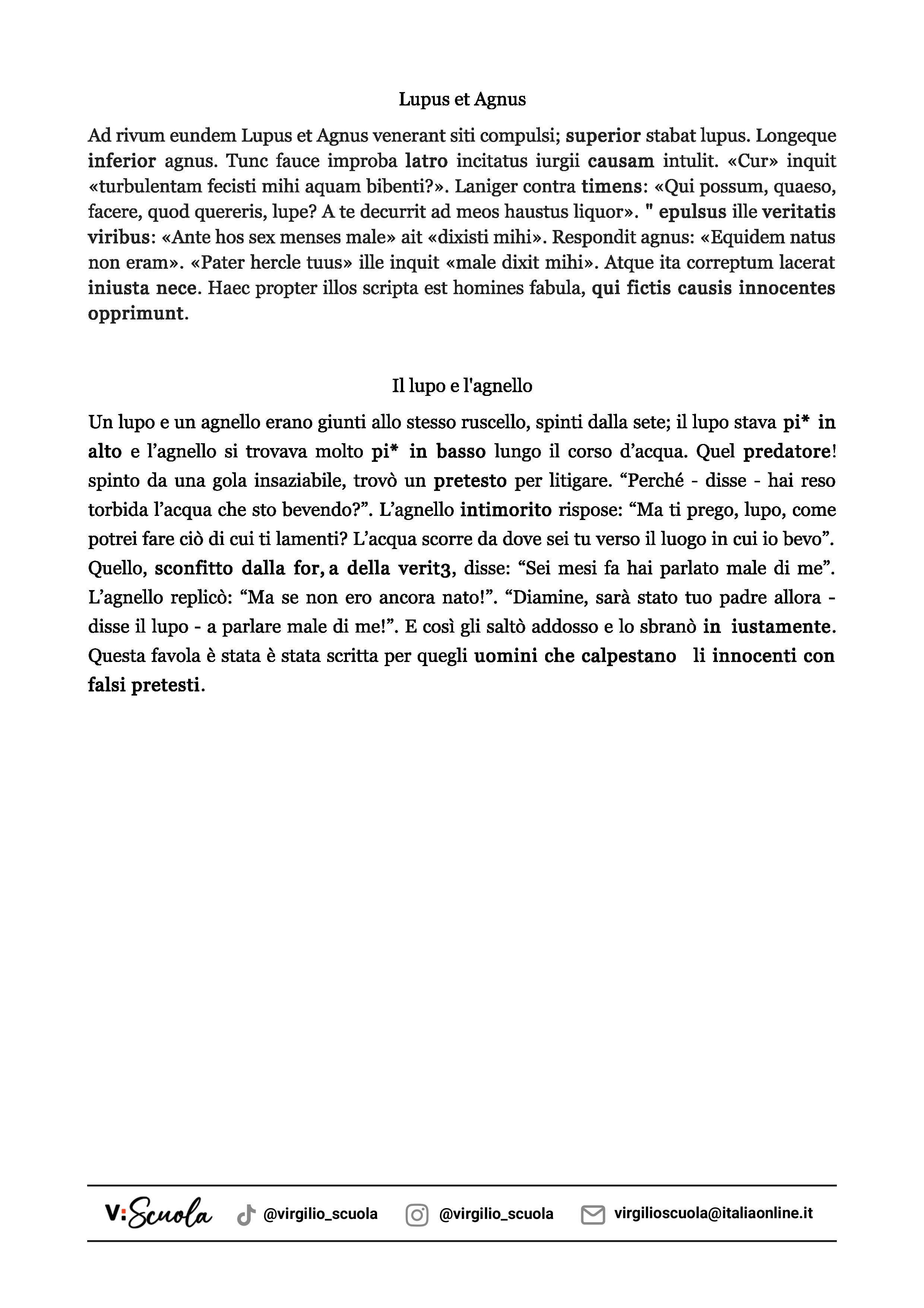 Nella scheda trovi il testo in latino e la traduzione in italiano: dopo averla letta rifletti sulle parole evidenziate. Ti accorgerai che, anche se sono passati circa 2000 anni, la definizione di bullo di Fedro è ancora tristemente attuale!
