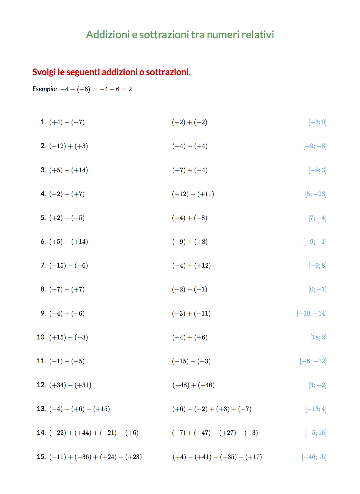 Scarica subito il PDF con gli esercizi su addizioni e sottrazioni tra numeri relativi:
