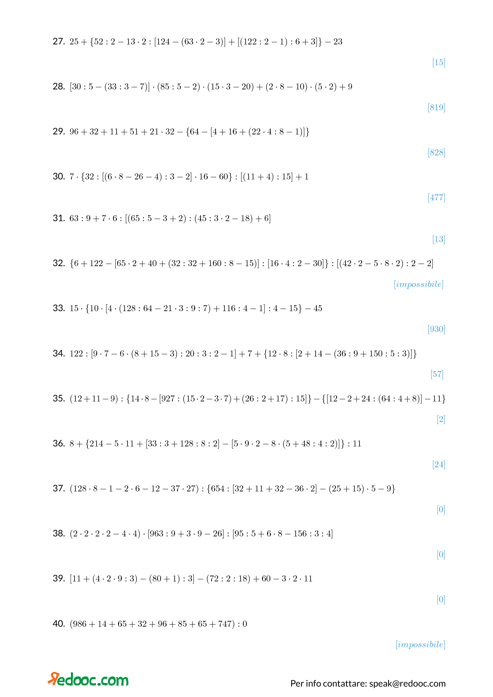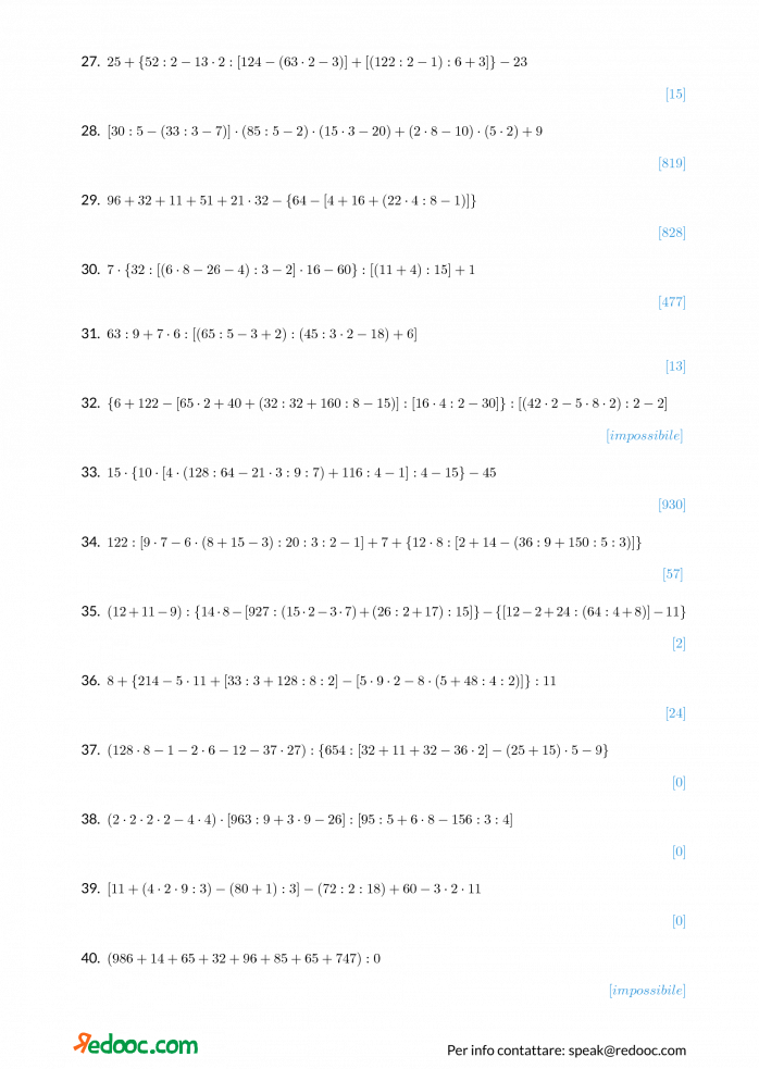Espressioni con le quattro operazioni: esercizi