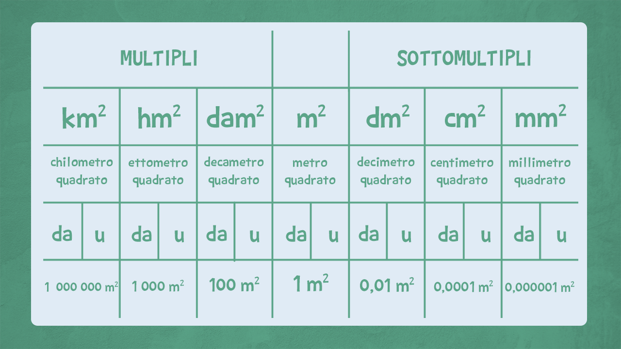 - il decametro quadrato (dam£$^2$£) corrisponde all’ara (a);