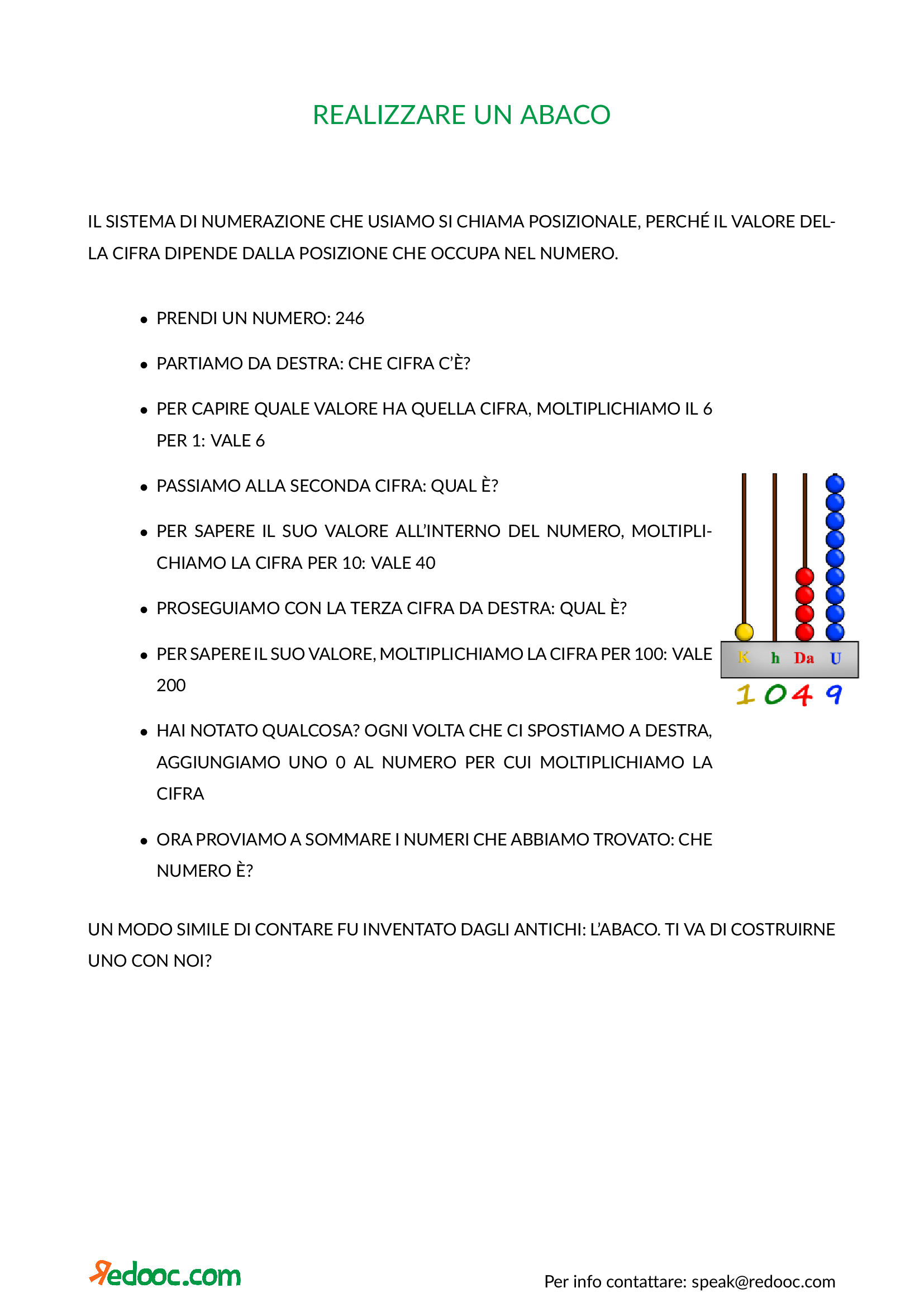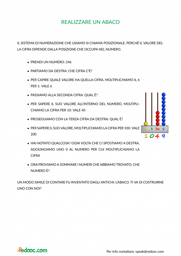 Scarica la scheda con le istruzioni per costruire un abaco: