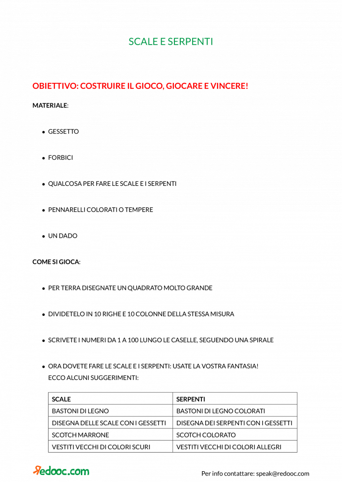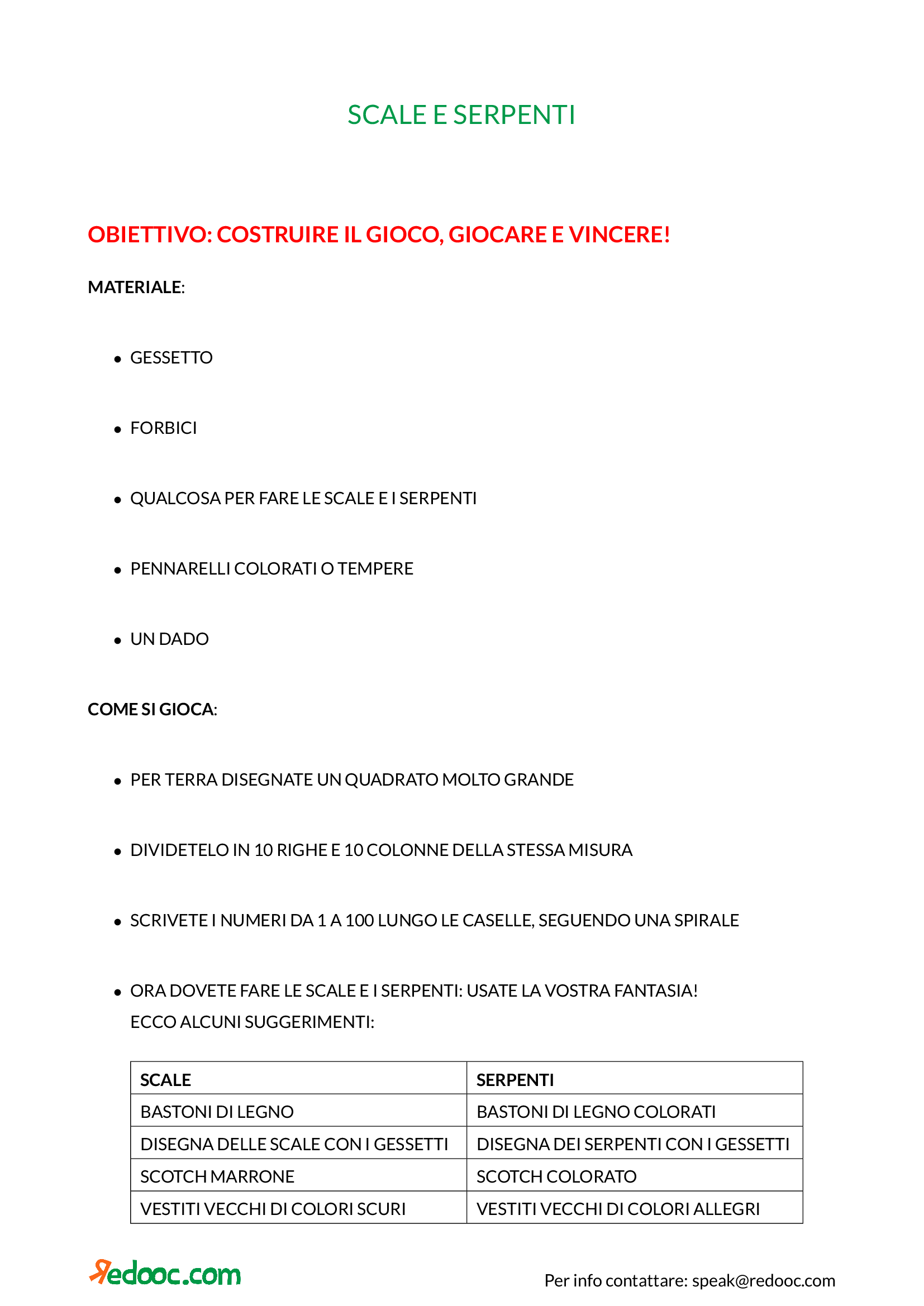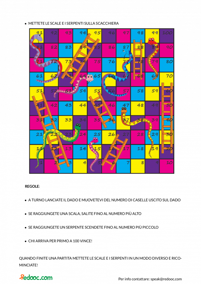 Scarica la scheda con le istruzioni per il gioco sale e serpenti: