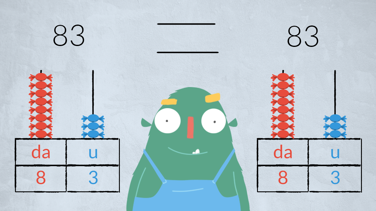 Due numeri uguali hanno le stesse decine e le stesse unità: per esempio 83 = 83 perché entrambi hanno 8 decine e 3 unità.