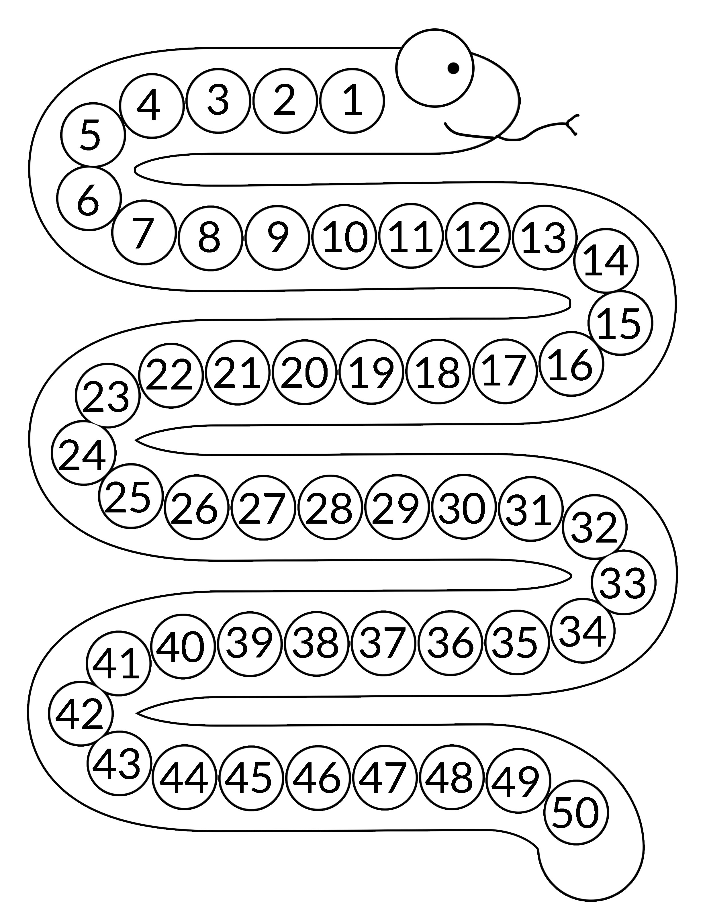 Lasciate che prendano confidenza con questi numeri: non serve far altro che aggiungere una decina per volta! Il serpentone aiuterà loro a comprendere meglio l’ordine dei numeri da 1 a 50.