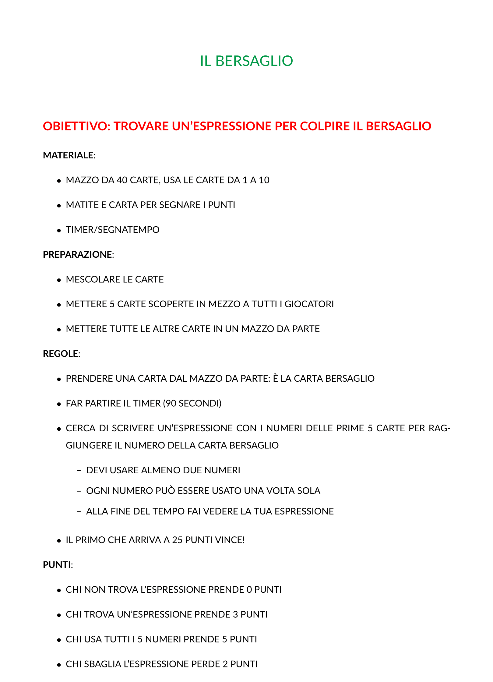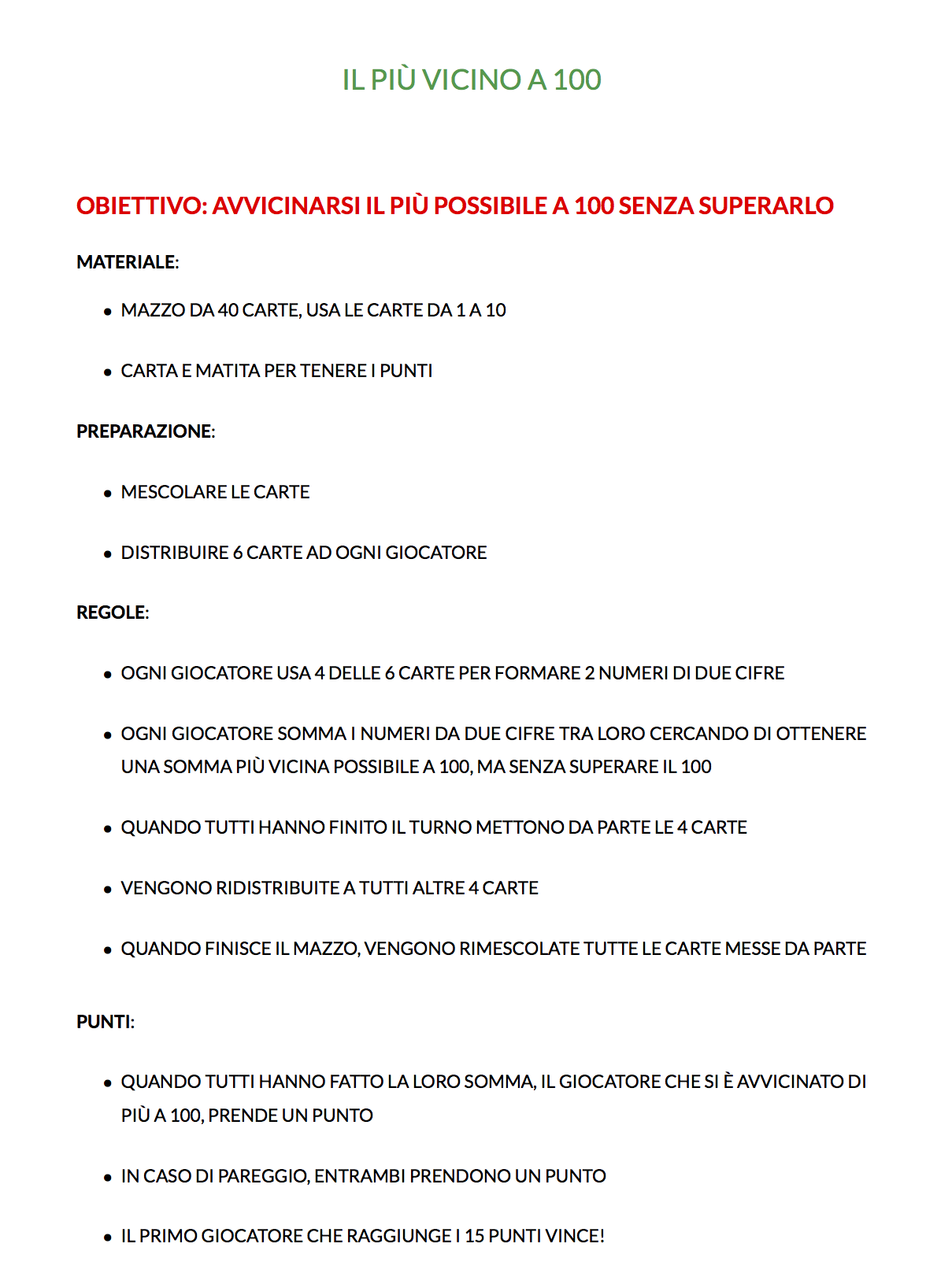 Scarica altre schede con le istruzioni di simpatici giochi da fare con le addizioni.