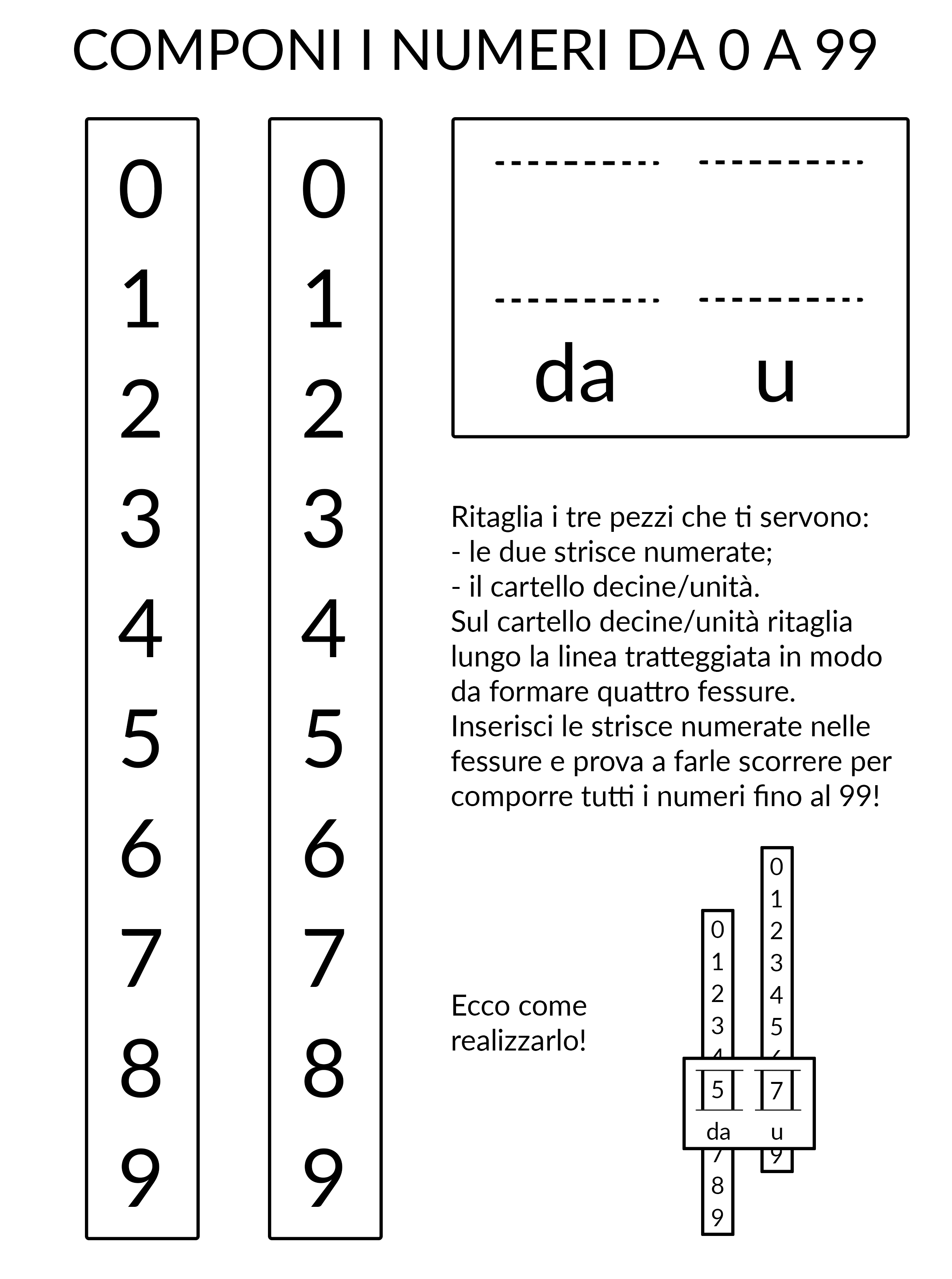 Aiutate ogni bambino a costruire questa specie di abaco: un gioco per abituarsi a leggere i numeri e confrontarli. Scarica la scheda con l’occorrente e le istruzioni: .