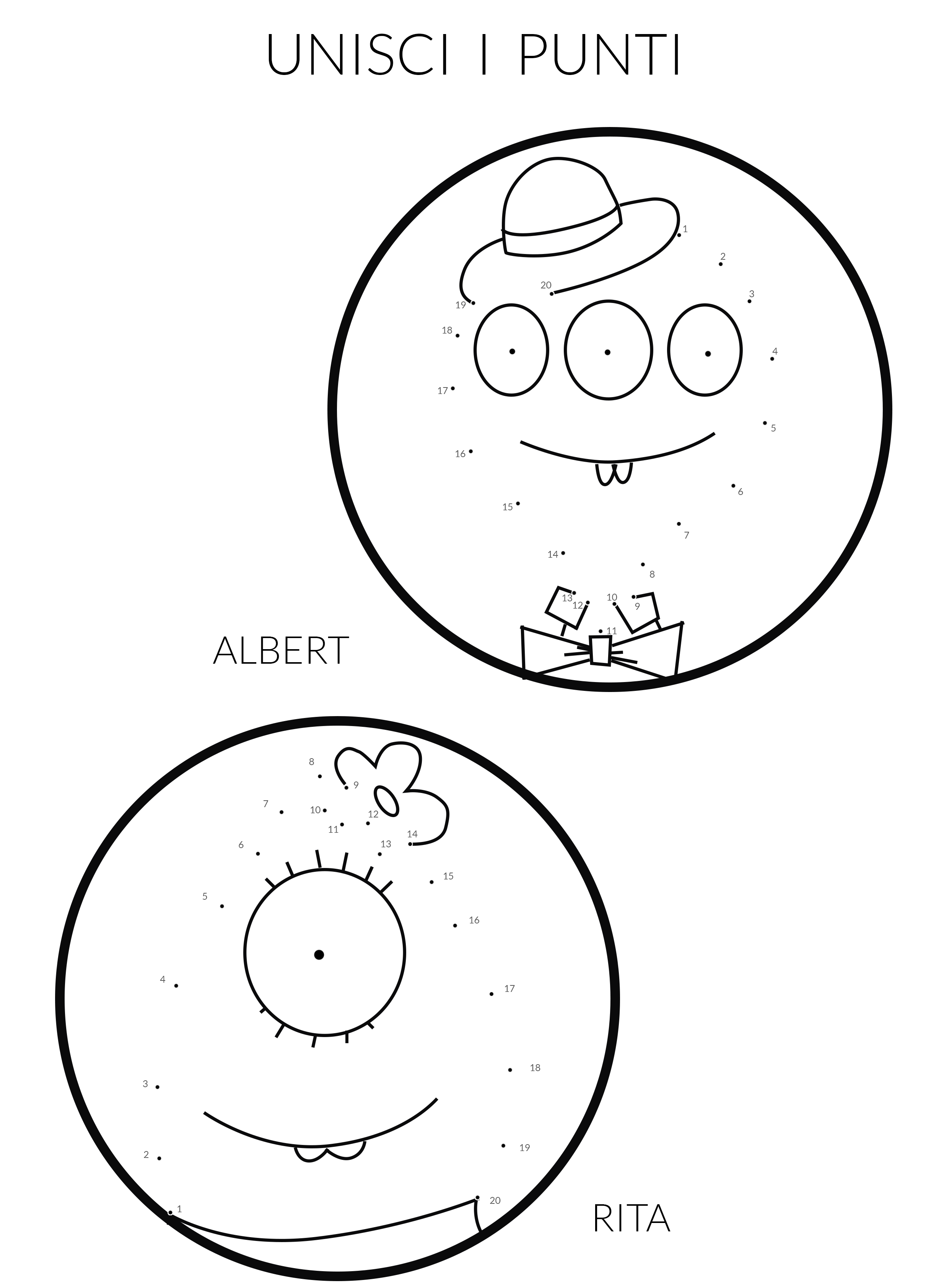Gioca con il classico “unisci i puntini"! I bambini devono collegare i punti nell’ordine giusto, dall’1 al 20, per far apparire il disegno finale.