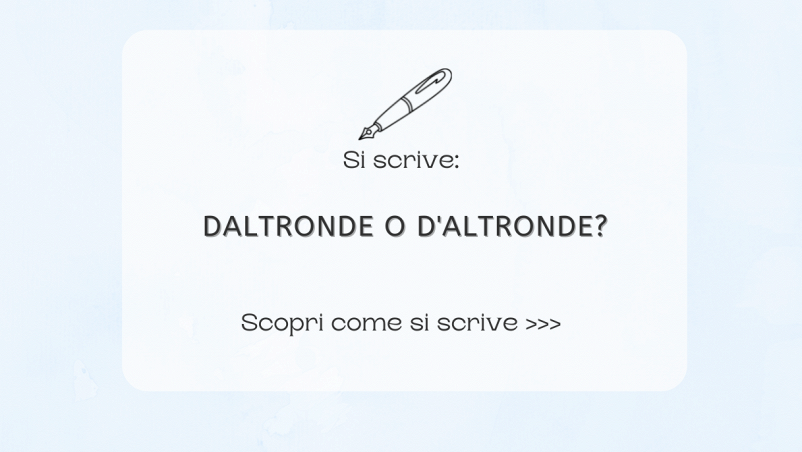 La grafia corretta è d’altronde, con apostrofo. La forma daltronde, in un’unica parola, è da considerarsi errata. Cerchiamo di capire perché e come mai possono insorgere dei dubbi al momento di scrivere questo termine.