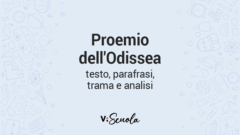 I primi 21 versi dell’Odissea, che ne costituiscono il Proemio, sono considerati come una delle pagine più alte e più famose della poesia di ogni epoca. La loro funzione è quella tipica di tutte le opere classiche, dunque chiedere l’intervento di una Musa ispiratrice, anticipare la trama del poema e presentarne il protagonista principale, Ulisse.