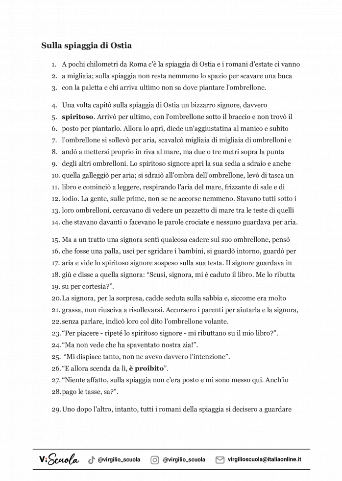 - Sulla spiaggia di Ostia di Gianni Rodari: comprensione del testo